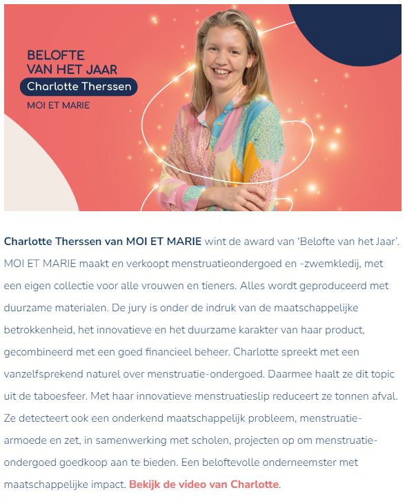 In het najaar van 2022 lanceerde ik daarom mijn eigen collectie met alle feedback die ik van klanten had verzameld. Alles wordt geproduceerd met duurzame materialen zoals bamboe en organisch katoen, en alle modellen zijn vooral zacht, comfortabel én hebben een groot absorptievermogen.